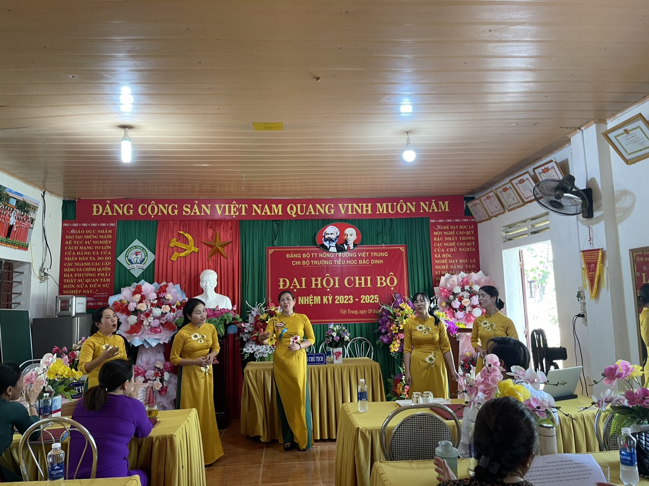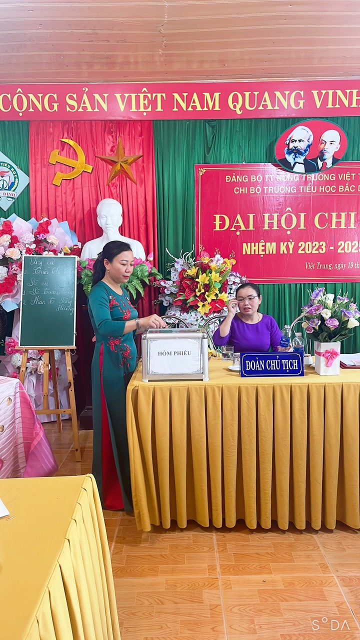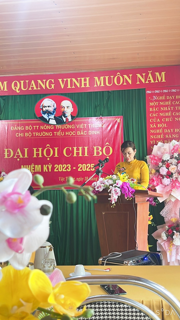 Thực hiện Điều lệ Đảng Cộng sản Việt Nam và Kế hoạch số 61-KH/ĐU, ngày 16 tháng 02 năm 2023 của Đảng ủy thị trấn NTVT về việc tổ chức Đại hội các chi bộ trực thuộc Đảng bộ thị trấn Nông Trường Việt Trung nhiệm kỳ 2023-2025. Được sự nhất trí của Ban thường vụ Đảng ủy thị trấn NTVT. Ngày 19/04/2023, chi bộ trường Tiểu học Bắc Dinh đã long trọng tổ chức Đại hội Chi bộ nhiệm kỳ 2023-2025.