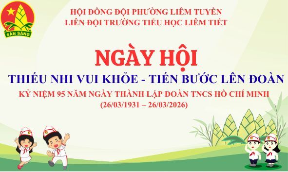 Sáng ngày 23/03/2026, Liên đội trường TH Liêm Tiết long trọng tổ chức Ngày hội“Thiếu nhi vui khỏe – Tiến bước lên Đoàn”. Chào mừng kỉ niệm 95 năm ngày thành lập Đoàn TNCS Hồ Chí Minh (26/03/1931 – 26/03/2026), và hưởng ứng đợt thi đua cao điểm chào mừng 85 năm ngày thành lập Đội TNTP Hồ Chí Minh. Ngày hội diễn ra sôi nổi và ý nghĩa với nhiều nội dung hấp dẫn: